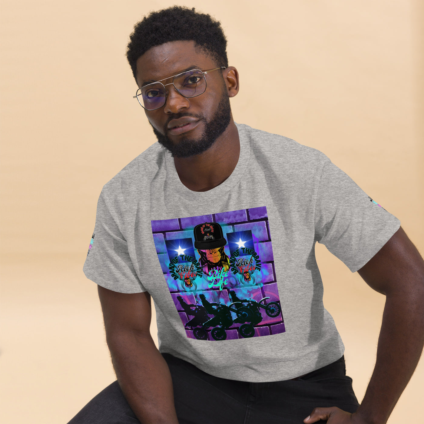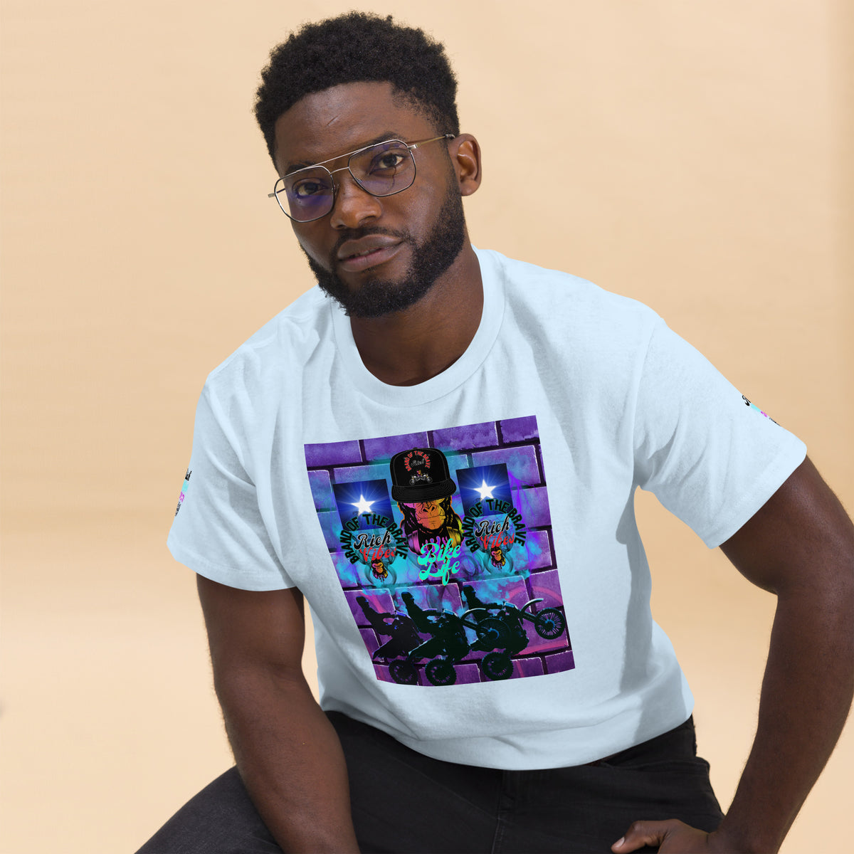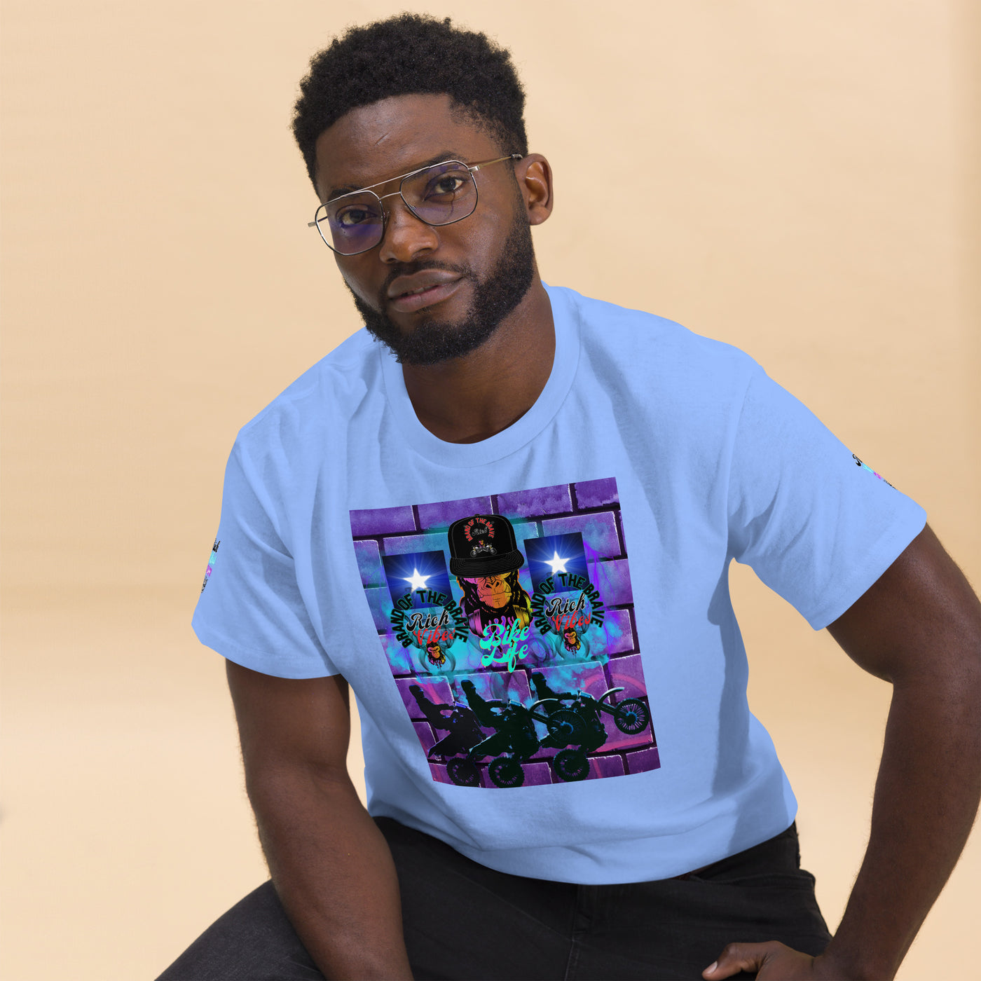 The 100% cotton men's classic tee will help you land a more structured look. It sits nicely, maintains sharp lines around the edges, and goes perfectly with layered streetwear outfits. Plus, it's extra trendy now!