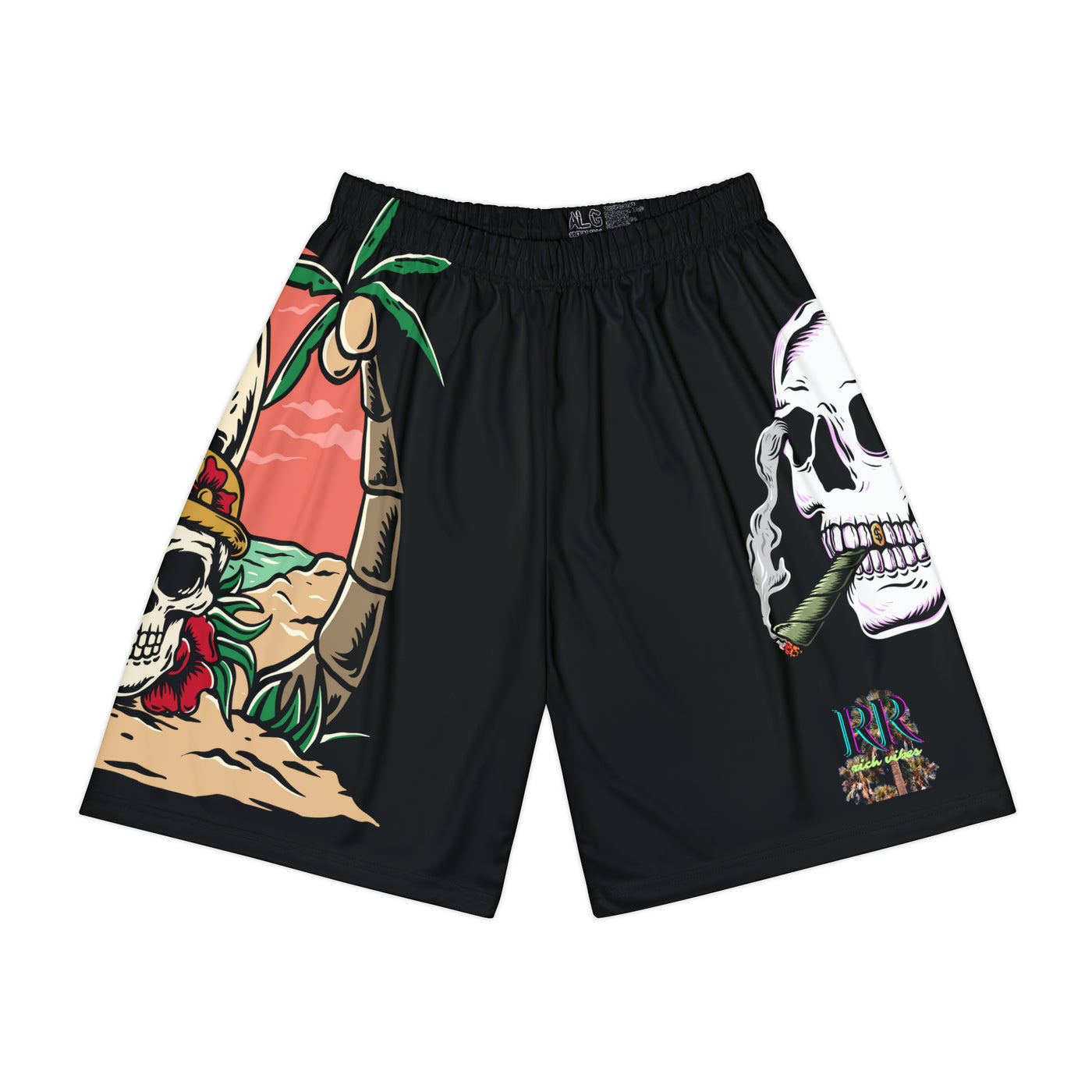 Rich Drip Beach Army Skull - RV Palm Tree Silhouette Men’s Sports Shorts (AOP) Black