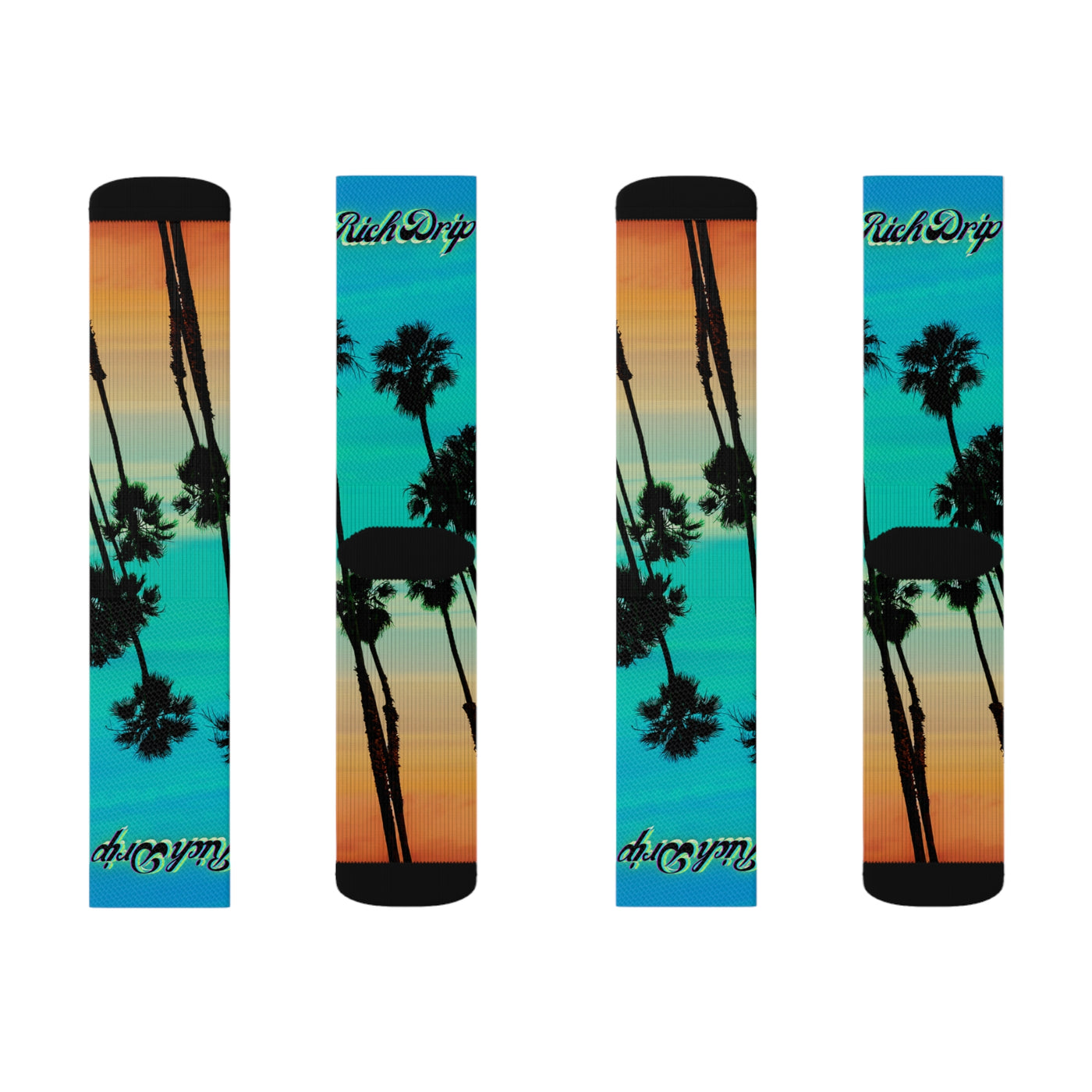 Rich Drip Blue Skies Beach Vibes - Sublimation Socks Black