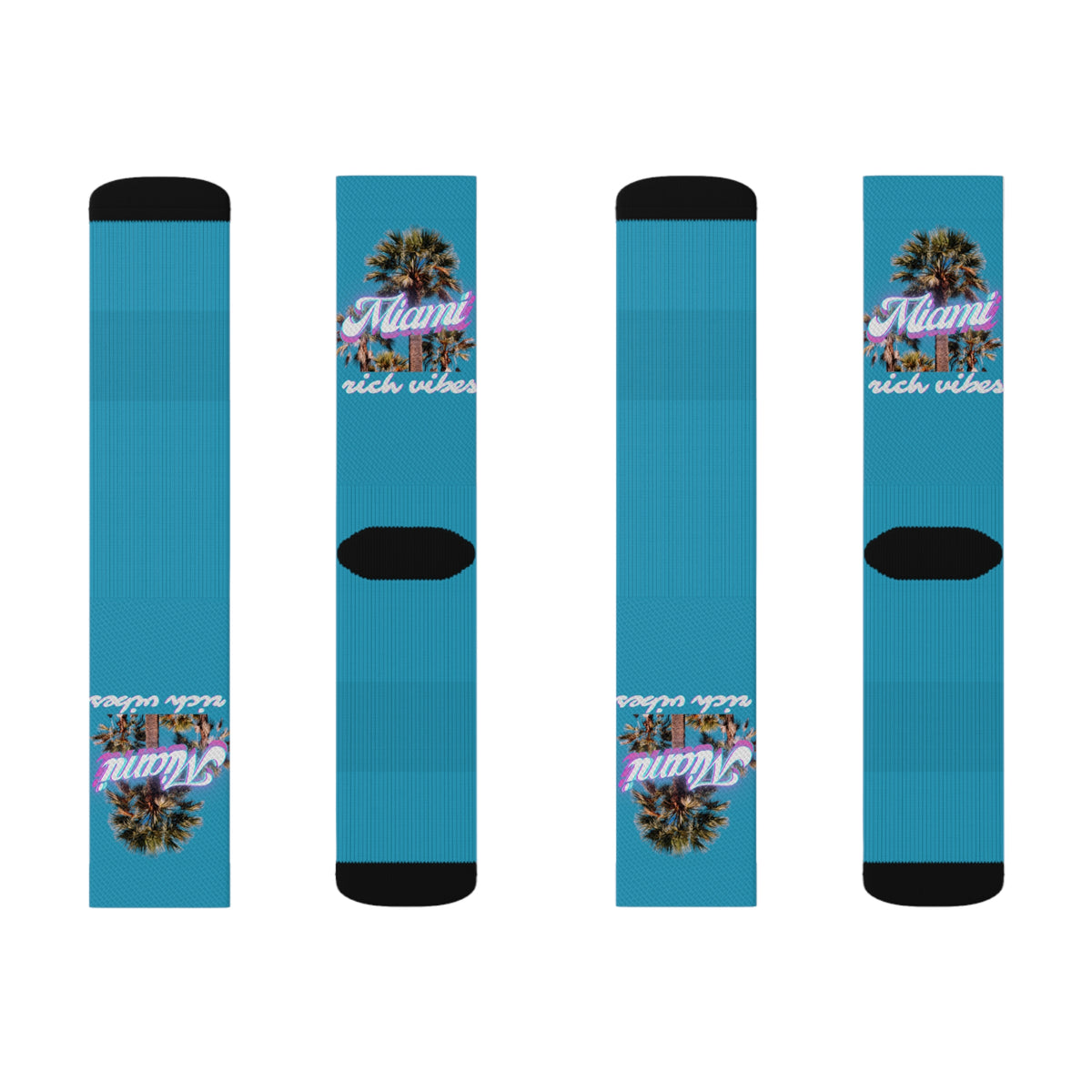 Rich Drip Miami Palm Tree Silhouette - Sublimation Socks Turquoise