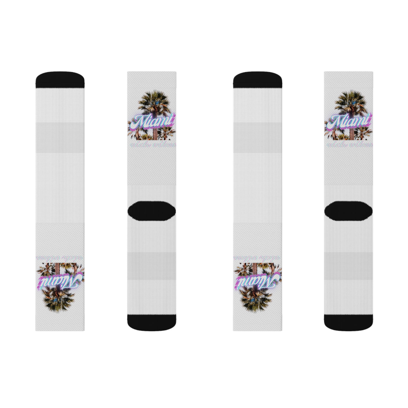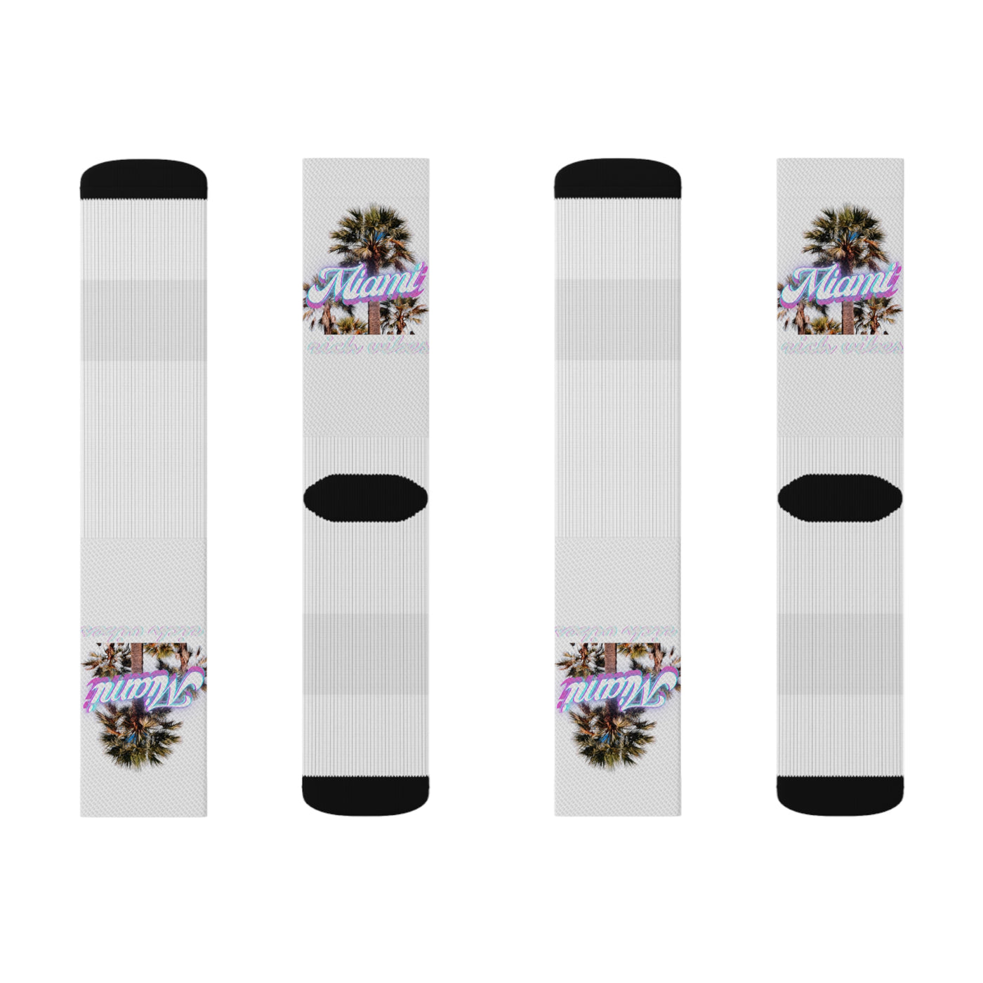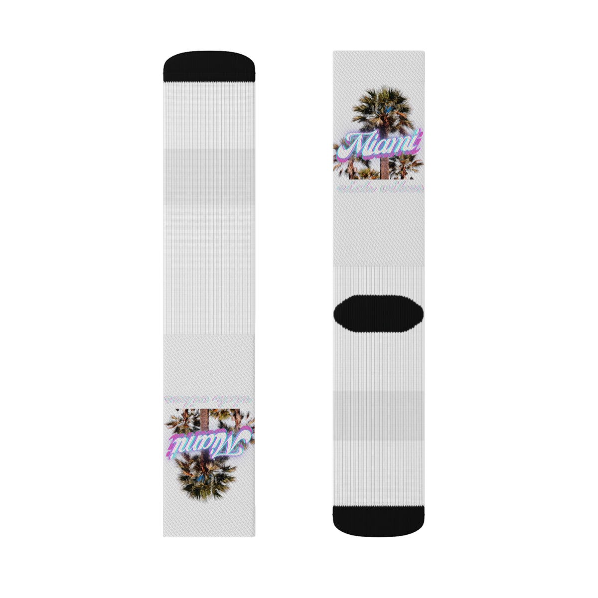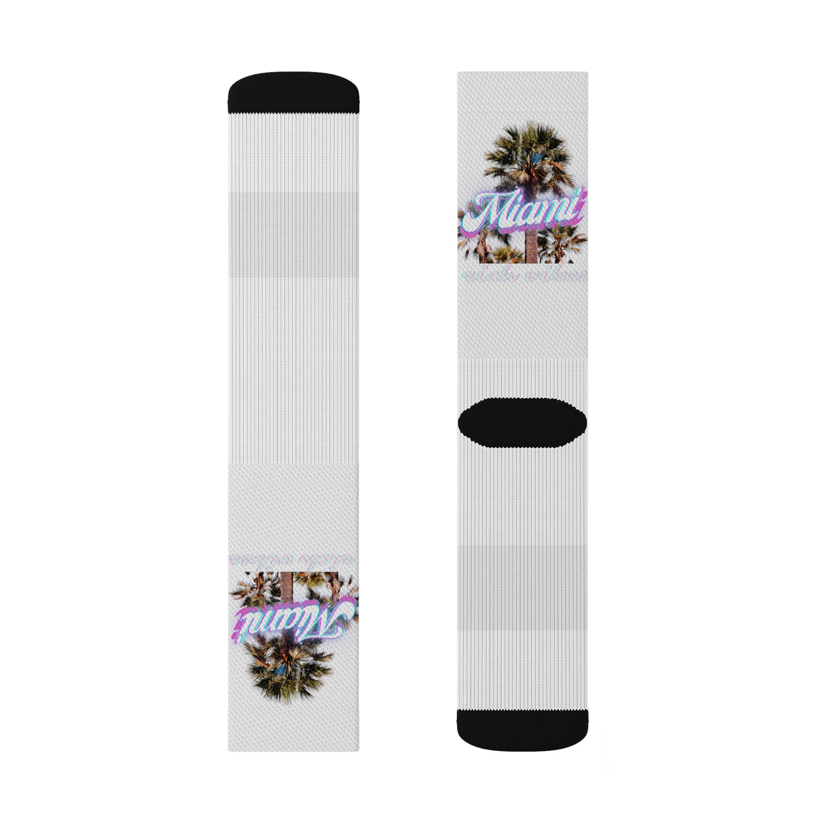 Rich Drip Miami Palm Tree Silhouette - Sublimation Socks White - M