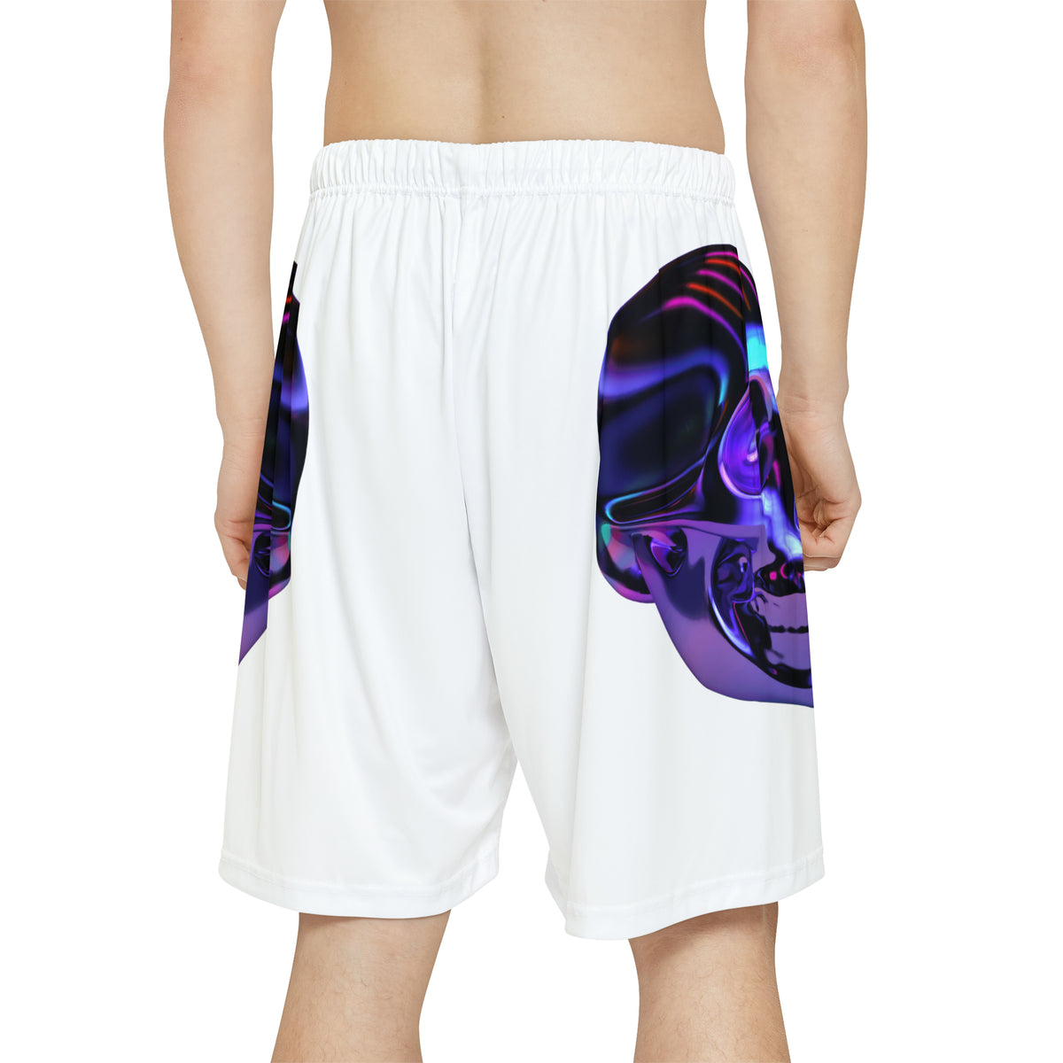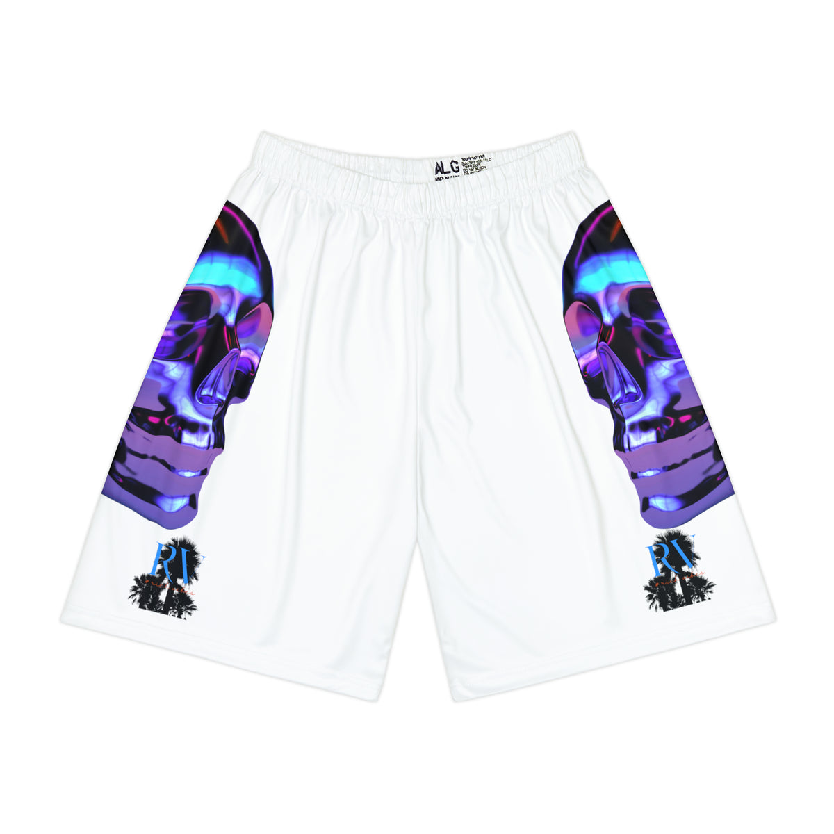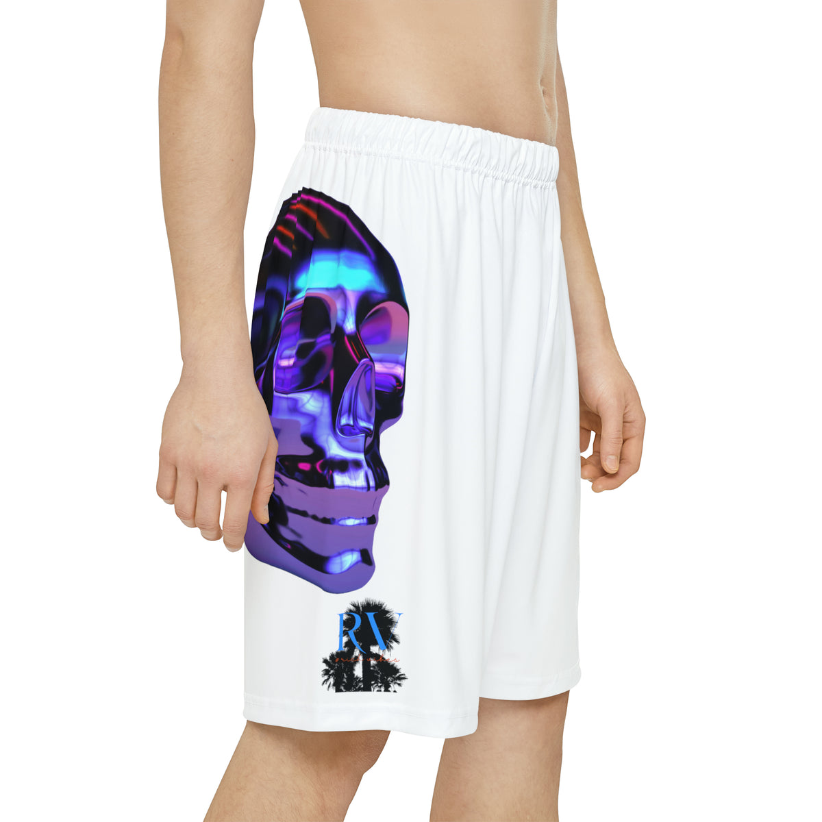 Rich Drip Psychedelic Metal Skull - RV Palm Tree Silhouette Men’s Sports Shorts (AOP) White