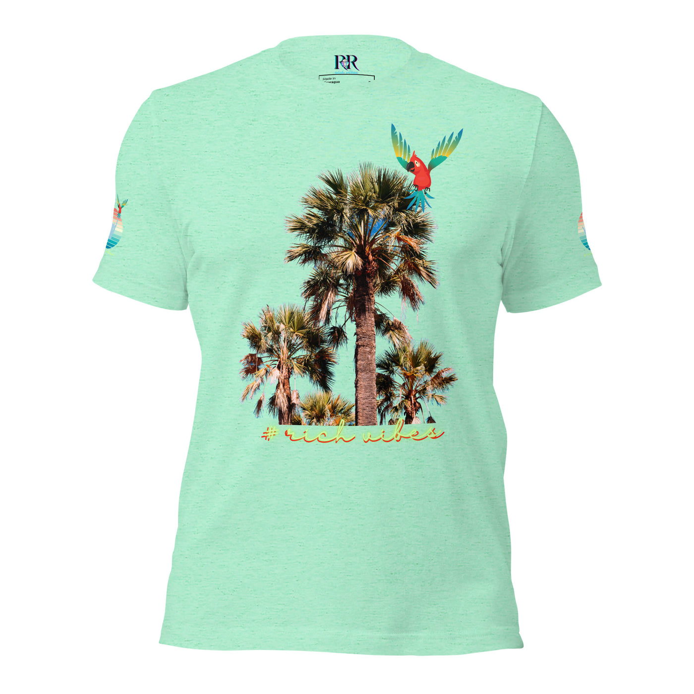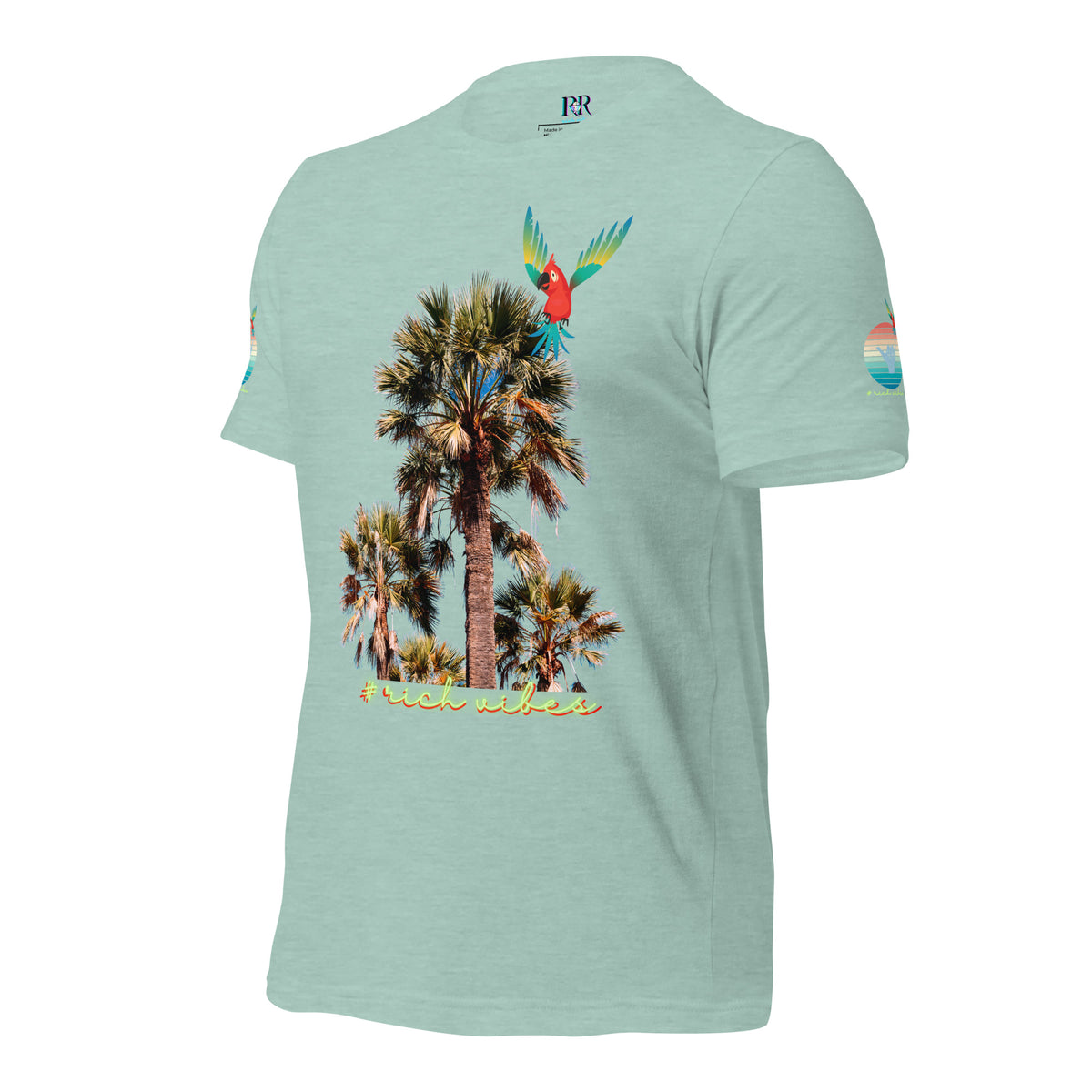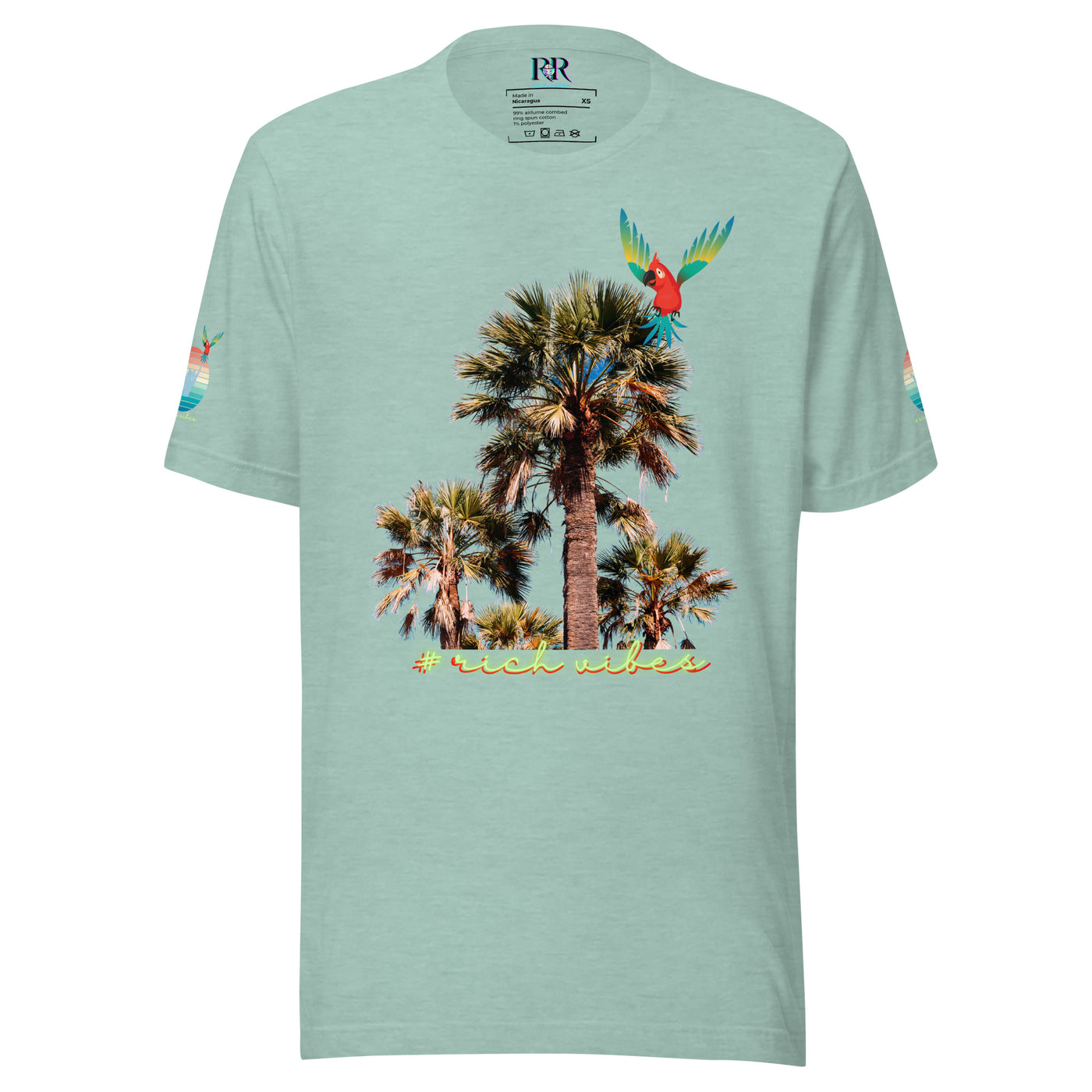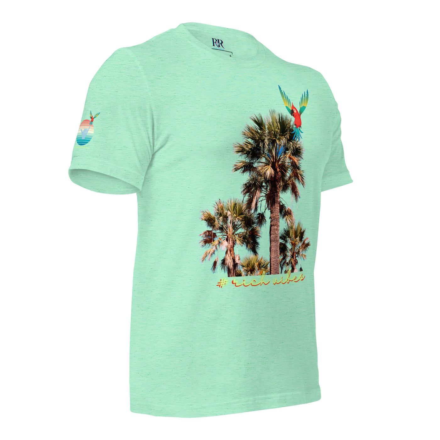 Rich Drip Volt Rich Vibes Colorful Palm Tree Silhouette Multi Colored Circle - Unisex t-shirt Pastel - Heather Prism Dusty Blue / XS
