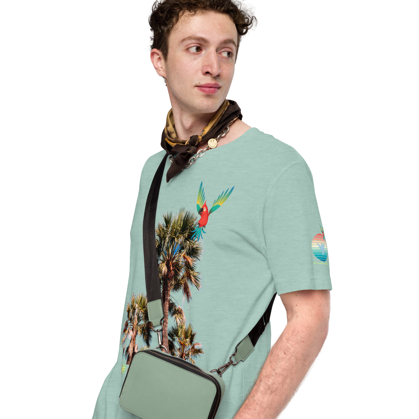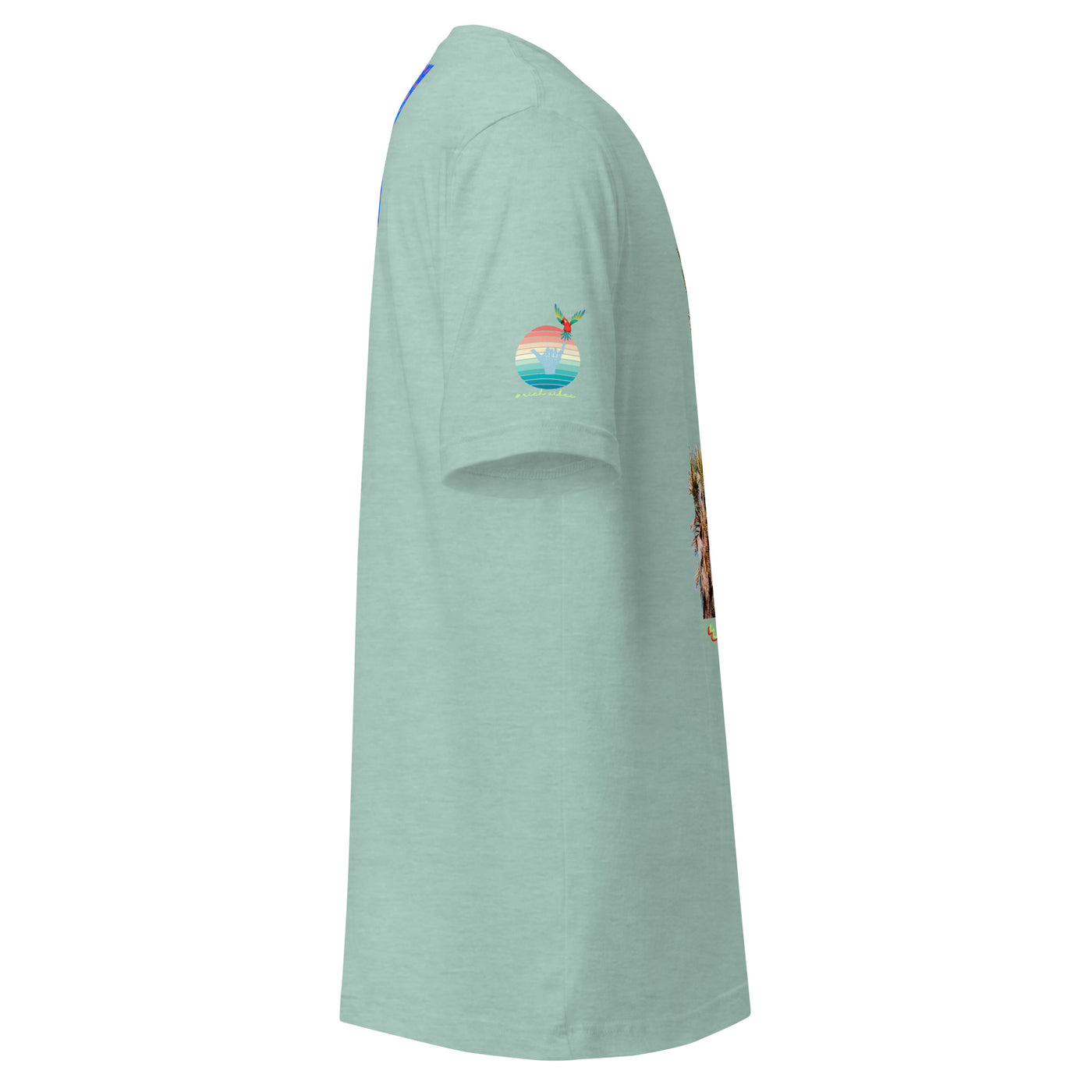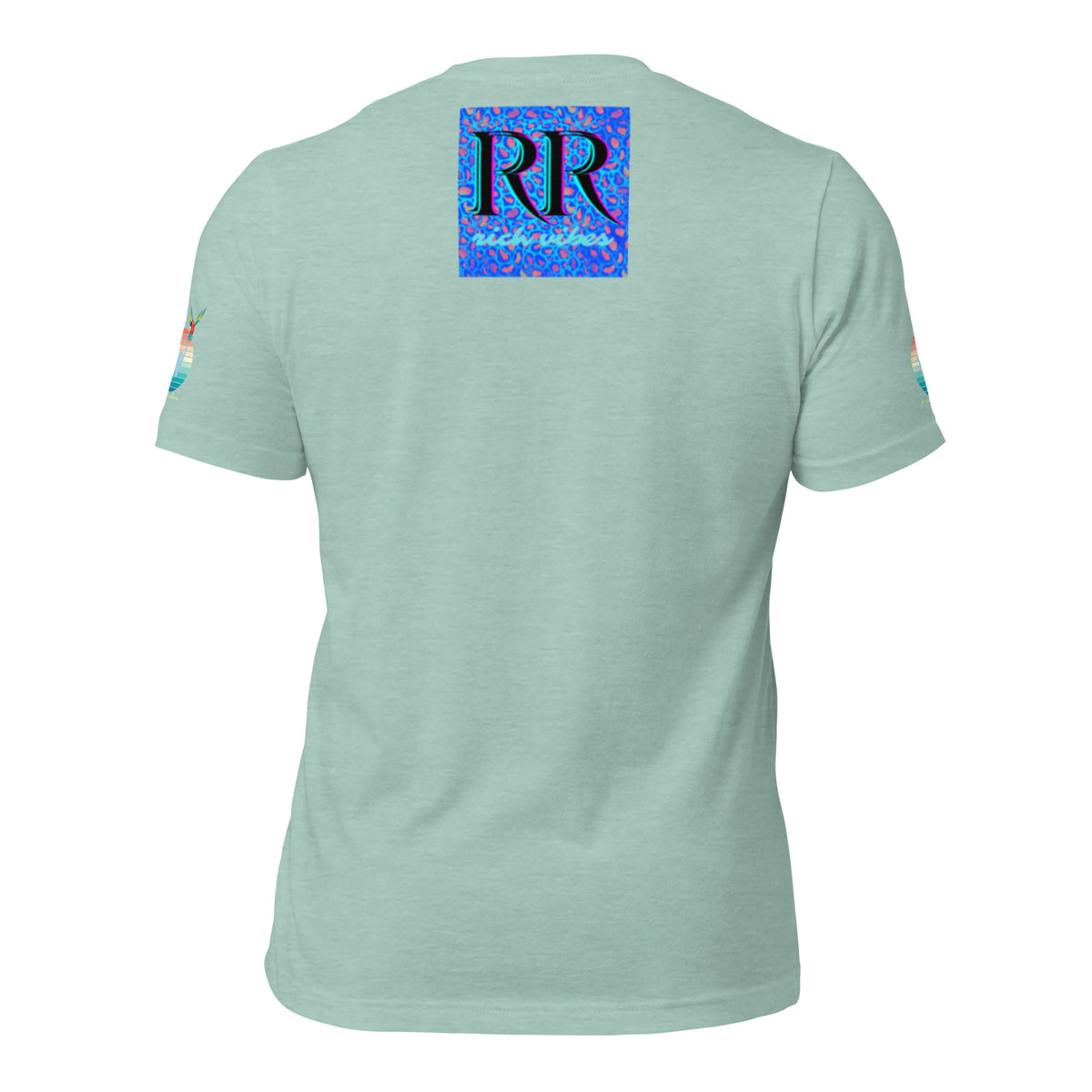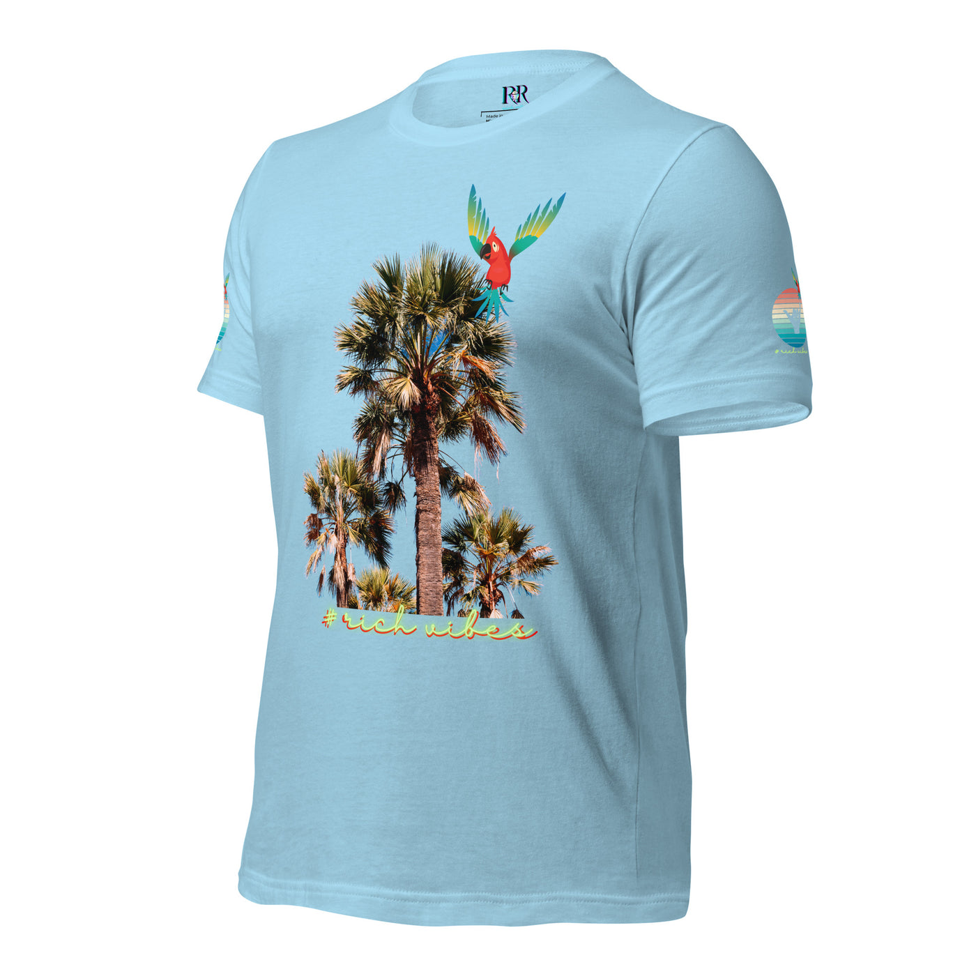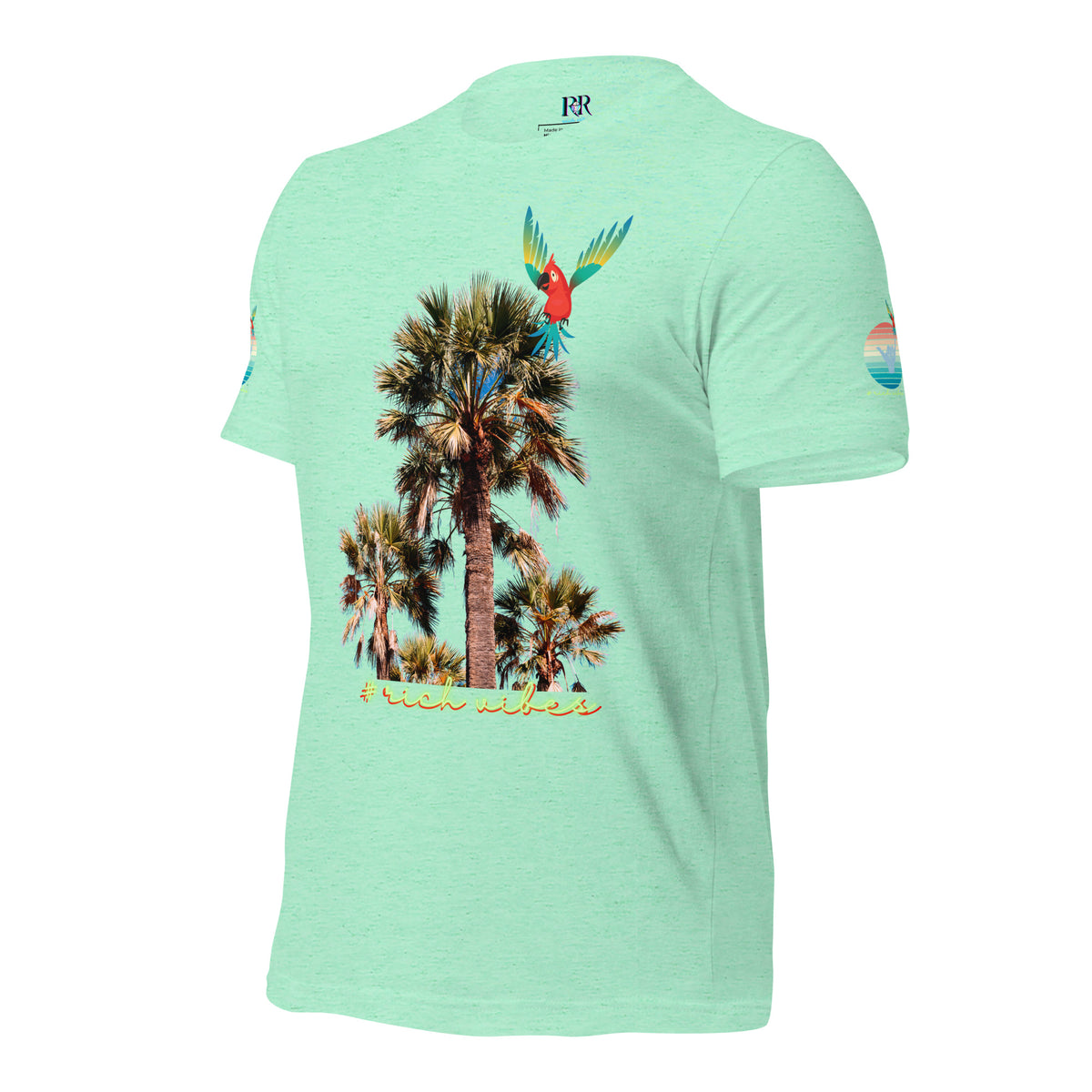 Rich Drip Volt Rich Vibes Colorful Palm Tree Silhouette Multi Colored Circle - Unisex t-shirt Pastel - Heather Prism Dusty Blue / XS