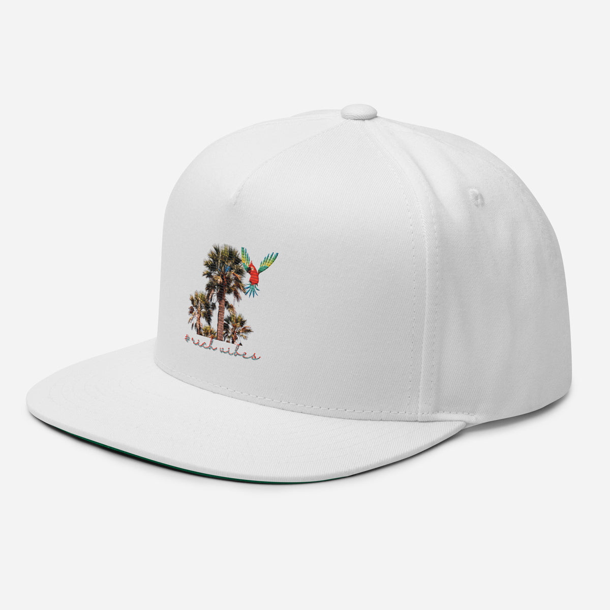 Rich Vibes Rich Drip Colorful Palm Trees Silhouette 1.1 - Flat Bill Cap White