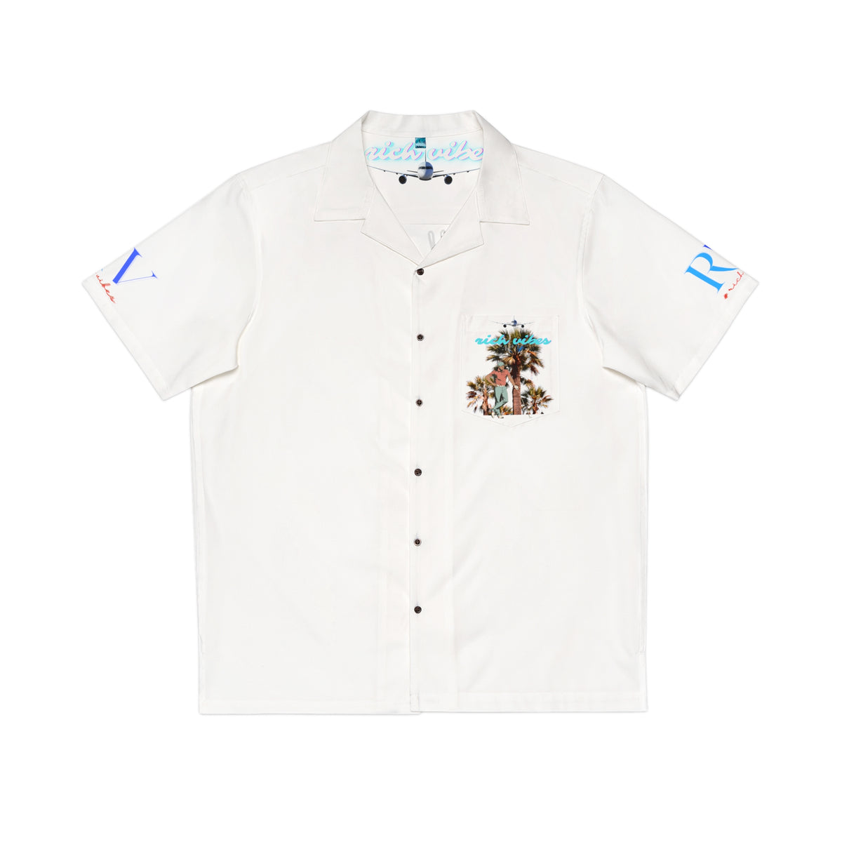 Rich Vibes RV Golfer's Colorful Palm Tree Chill Vibes - Men's Hawaiian Shirt (AOP)White